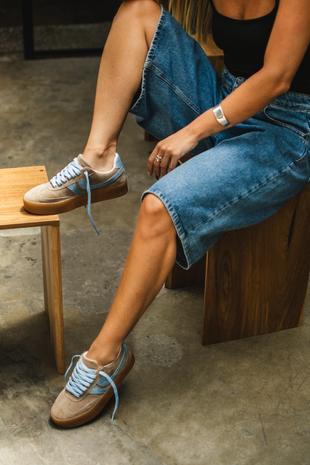 Zapatillas urbanas de plataforma hechas en ecocuero gamuzado con recortes. Super livianas y comodas. Forradas en jersey por dentro y cuentan con plantilla acolchonada.