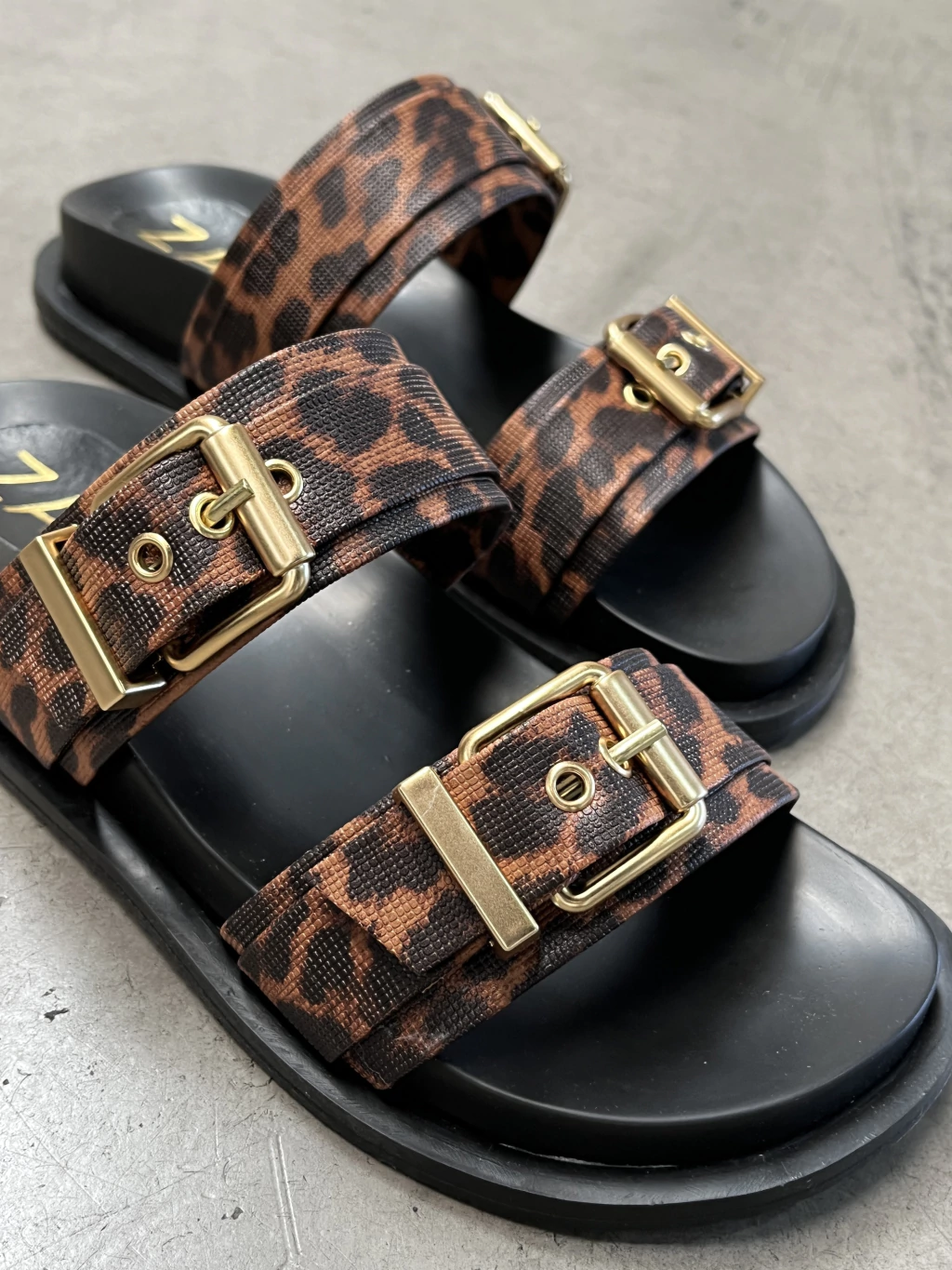 Sandalia con doble tira ancha hecha en ecocuero texturado y doble hebilla regulable en el empeine. Cuentan con plantilla super confort De base super liviana y buen agarre.